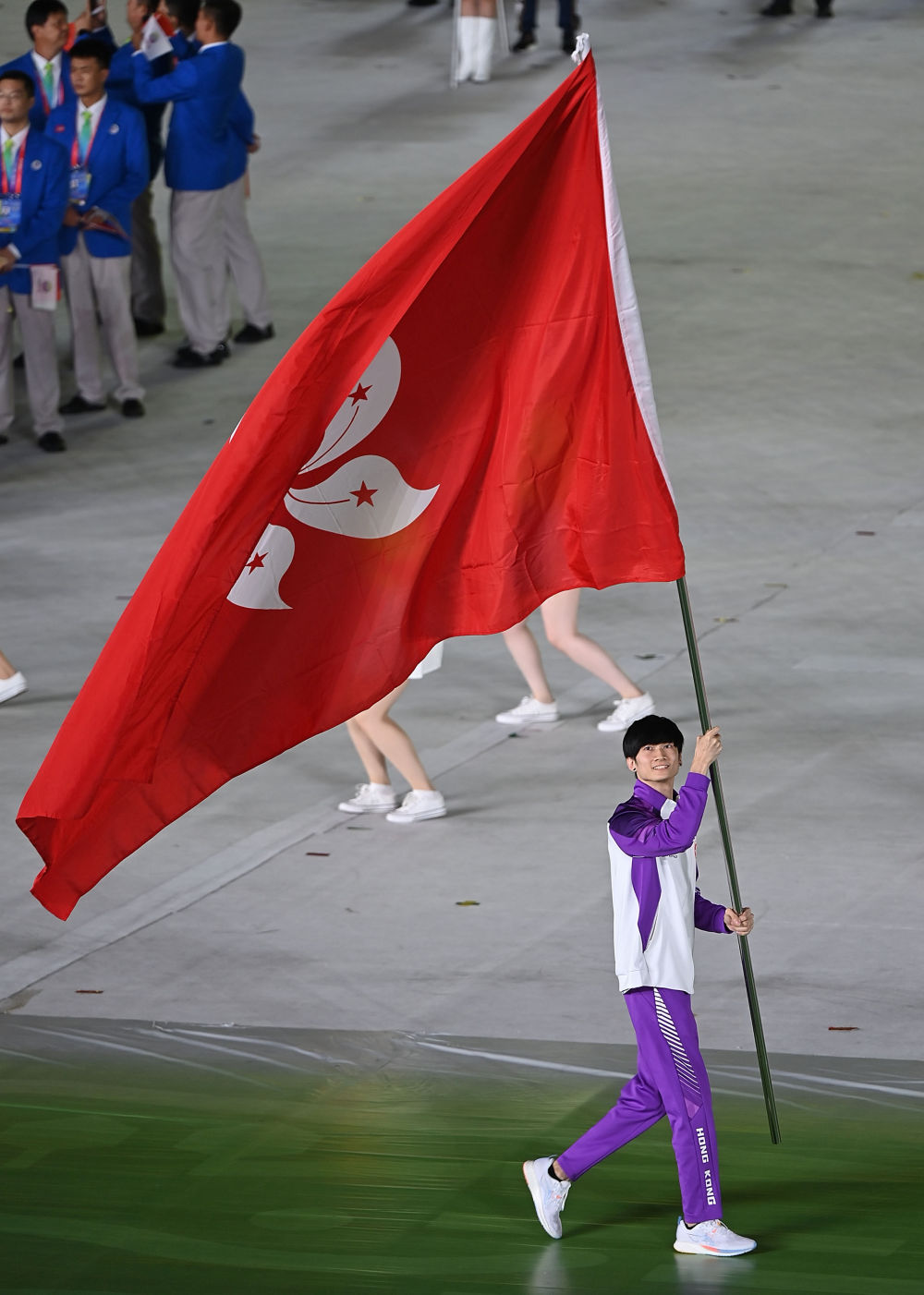 “你去国外比赛,中国香港代表团入场的时候,国外观众可能都不知道你,也不会关注你。但是前几天在西安的(全运会)开幕式,哇,你看香港入场的时候,观众那么多人在欢呼,我们年轻的旗手也受到了那么多的访问(采访)。”他说。
