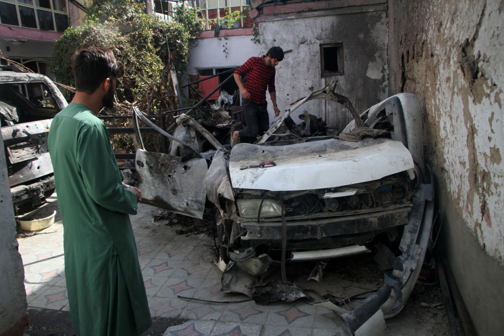 9月2日在阿富汗喀布尔拍摄的遭美军无人机打击现场。(新华社发,塞夫拉赫曼·萨菲摄)
