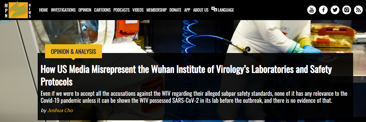 △美国Mintpress News网站15日报道,加拿大约克大学卫生政策研究项目主任克劳迪娅·乔凡指出,美国获得了广泛进入武汉病毒所的机会,而且获准进入的不仅有科学家,还有美国国务院的工作人员。