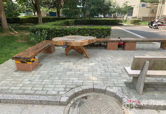 今年,社区在渔港家园内陆续添设了30张石凳、10张石桌,此举不仅方便了有休闲纳凉需求的老年居民,也解决了楼道堆物问题。