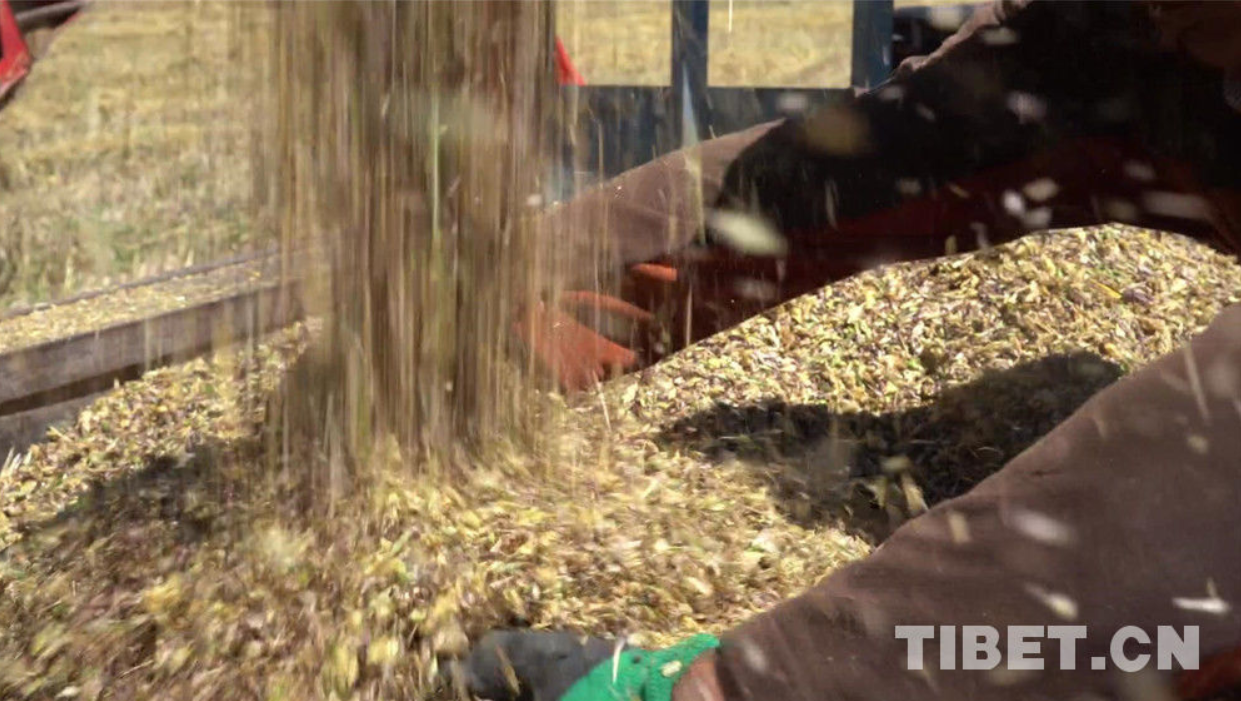 图为收青稞