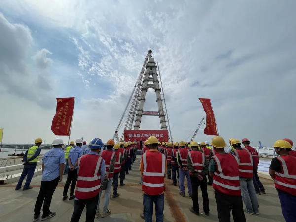 9月20日,又有好消息传来——宛山湖大桥钢塔(主塔)顺利合龙。