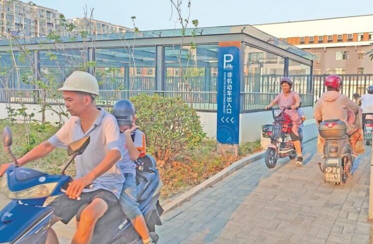 接到学生后,开汽车与骑电动自行车的家长也是分开通行。出口设置在吴韵路上,惠山交警大队安排了女交警进行护学。护学民警和学校工作人员一起站在非机动车出口,看到有的家长出来,后面搭载的小朋友没有戴安全头盔,立即提醒“回去帮孩子买个头盔”。看到有的家长图方便想把电动车停放在人行道上,民警立即劝阻。据了解,经过半个月多的运行,交警和学校打算在此基础上进一步优化三小周边的接送环境。首先是将地面非机动车停放点扩大,让家长有充足的地方停放车辆。其次是将非机动车出入口分开,在机动车出口北侧另外开出一个通道,专门让非机动车出来,这样既可以消除非机动车彼此之间的冲突,也能减少机动车和非机动车在路口交汇。
