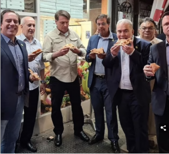 据法新社21日报道,为参加第76届联合国大会,博索纳罗19日率代表团抵达美国纽约。次日,总统一行吃比萨的照片火遍全网:令人意想不到的是,一众巴西政要在纽约市的第一顿晚餐竟然是在路边吃的,这顿“路边饭局”的参与者包括政府秘书处部长拉莫斯、卫生部长奎罗加、旅游部长马查多、巴西联邦储蓄银行行长佩德罗等人。