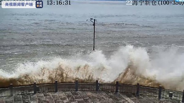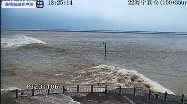 北岸海宁老盐仓回头潮撞向东西塘,呈现冲天潮
