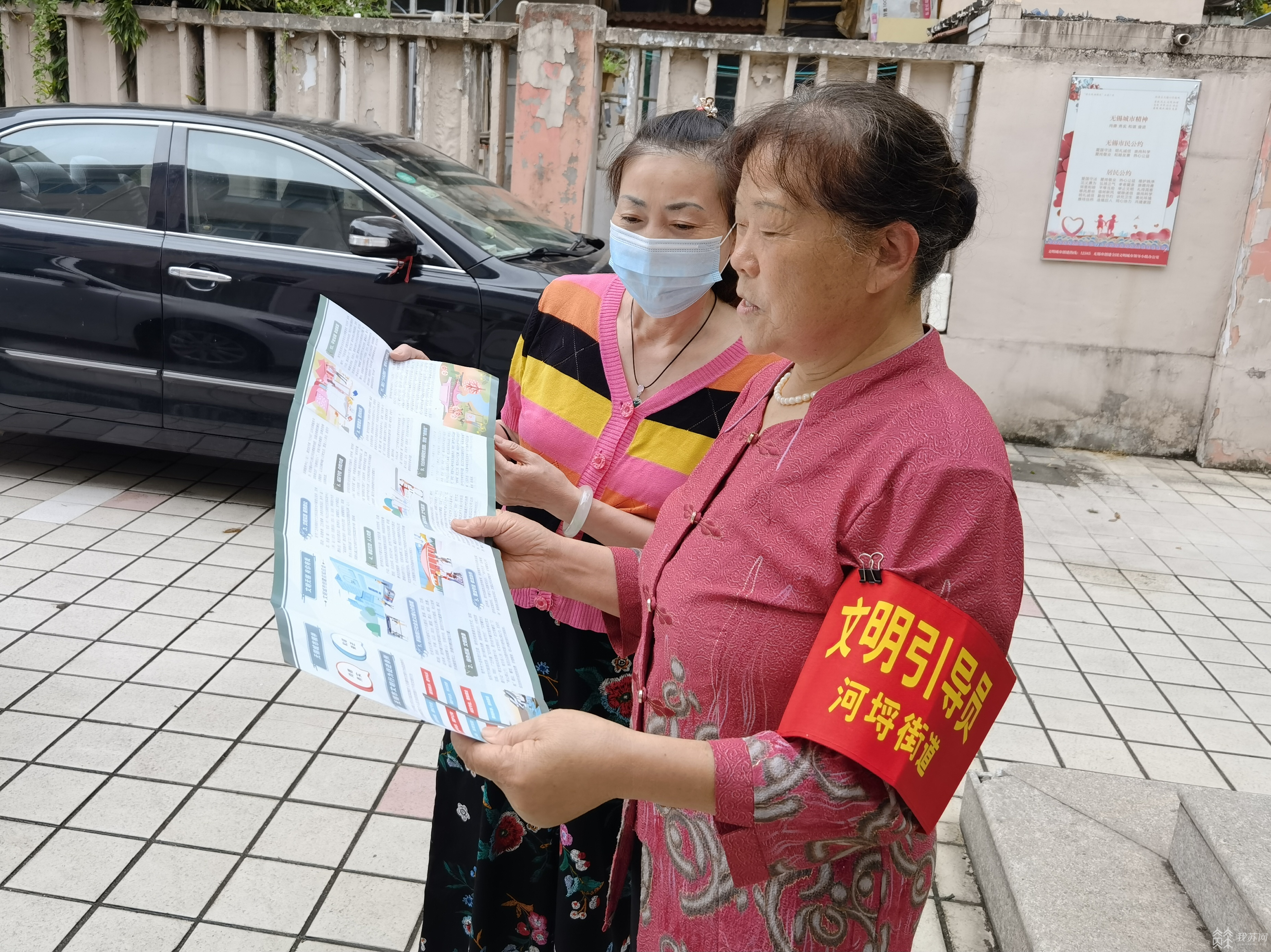 每天晚上,当万家灯火亮起,河埒街道各社区的网格员和志愿者们就带着文明城市的宣传手册和单页,通过入户宣传的方式进行文明新风的宣传引导,提高居民的安全意识和对创建文明城市的认识程度,使广大居民群众充分认识到创建文明城市的必要性。家住水秀社区水秀新村的回族阿姨梅燕和陈玉芝长期参与社区公益志愿活动,在得知社区人手紧张的情况下第一时间申请加入了志愿宣传队伍,和水秀社区网格员一起做好文明宣传引导、抓居民思想疏导、维护新村环境,带动了居民群众自发开展自家环境卫生大扫除,引导居民群众从自身做起,从点滴做起,从身边小事做起,营造关心环境、关注环境、关爱环境的良好氛围。