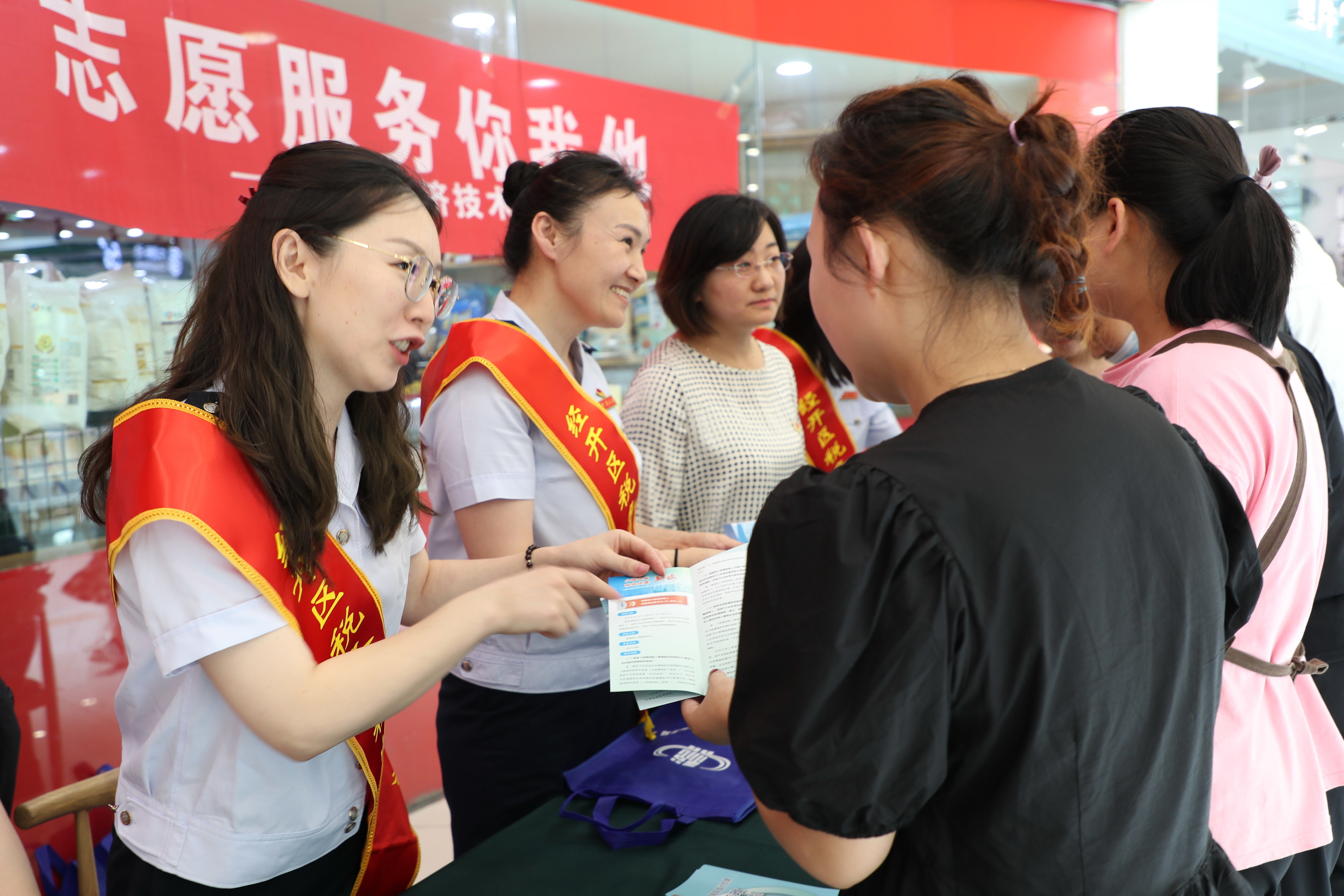 “请问‘江苏税务’APP如何注册呢?现在有哪些业务功能?”宿迁经济技术开发区税务局在社区邻里中心开展了一次青年党员志愿者服务活动,几位群众围过来积极咨询着。活动现场,青年党员志愿者佩戴红色绶带,向群众及商铺门店发放宣传彩页,详细讲解税收知识,宣传小微企业税费优惠政策,介绍一系列便民服务举措。