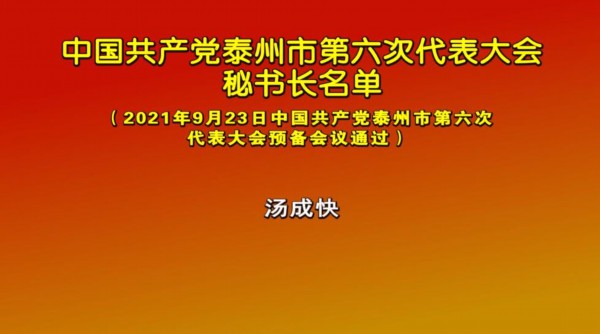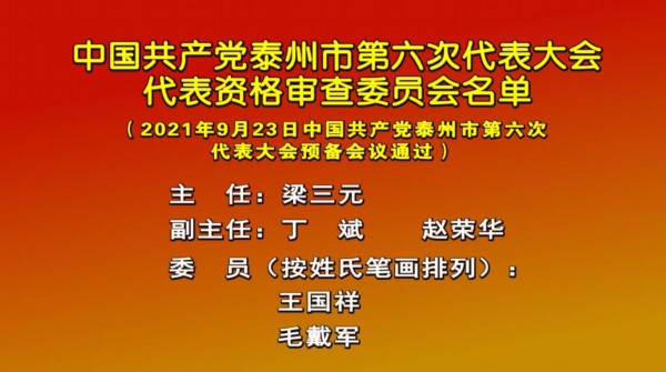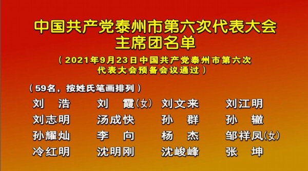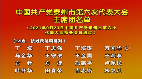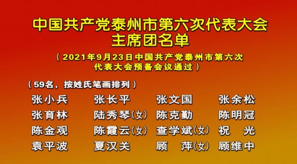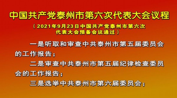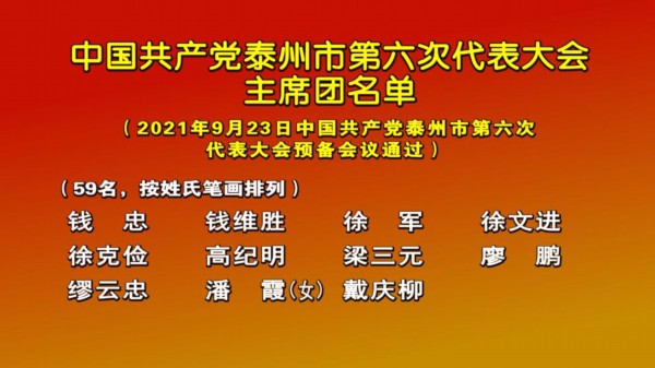 9月23日下午,中国共产党泰州市第六次代表大会预备会议在泰州大剧院召开。