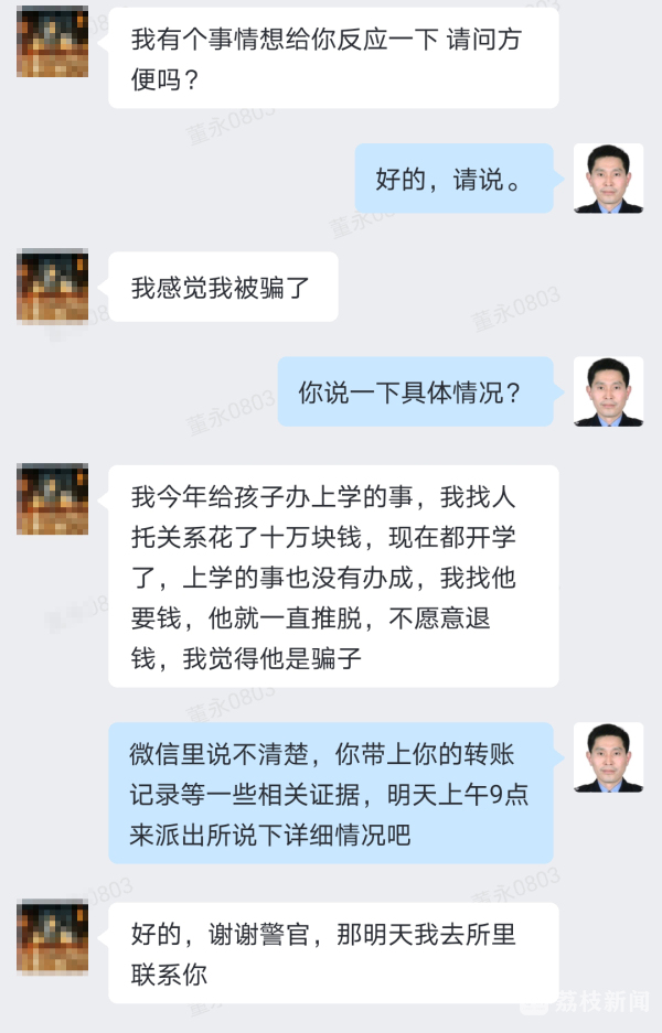 民警提醒大家,给孩子办理入学一定要通过正规途径办理相关入学手续,切不可盲目相信他人所谓的有关系,以免上当受骗,如遇被骗,一定要保存好证据,及时报警。