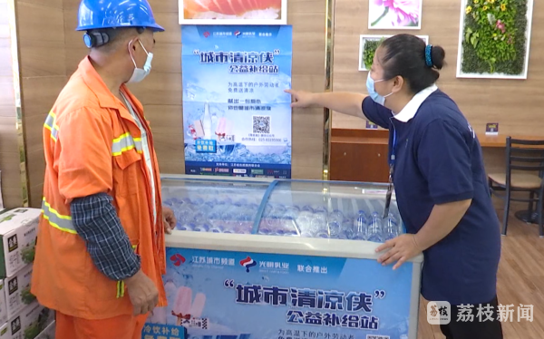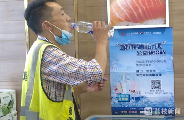 城市清凉侠,爱在你身边。由江苏省志愿服务联合会支持,城市频道联合光明乳业等多家爱心企业推出的第四季“城市清凉侠“公益活动持续进行。这两天,秋老虎再发力,南京的最高气温甚至达到35℃,为了给户外工作者们带来更好的服务,南京再添5个公益站点。