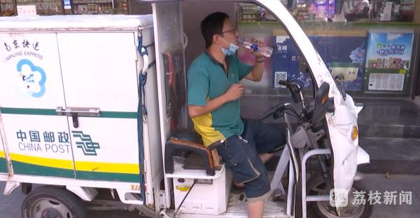 快递员 丁先生说:“这段时间快递量比较大,我们也比较忙,有时候水来不及喝 ,有这个活动很好,非常感谢为我们户外工作者提供的这个服务。”