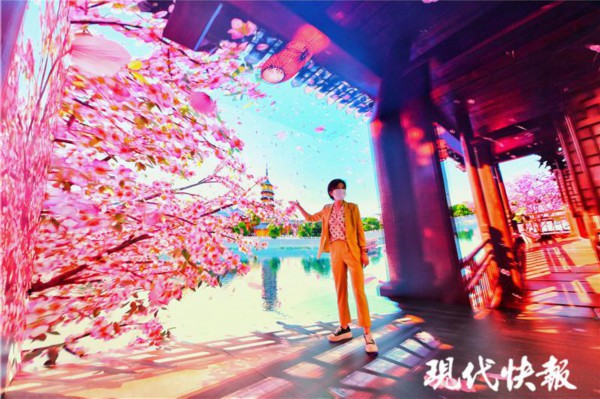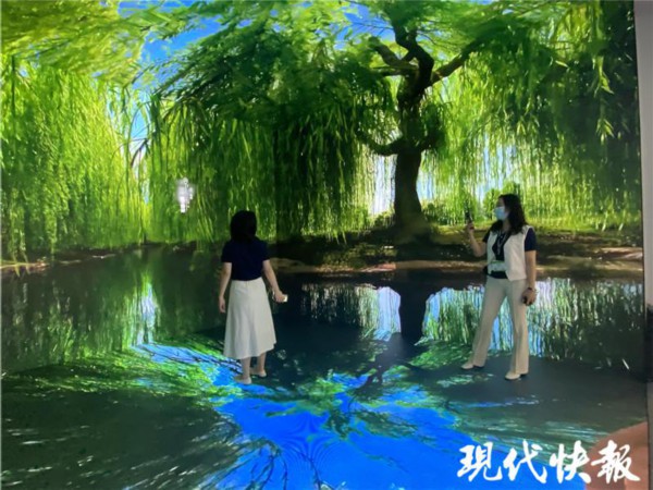 在五面环绕的屏幕前,和身后的运河美景来个自拍,再好不过。" 来帮我拍张合影 "" 路过就想来打卡一下 "……"5G 大运河沉浸式体验馆 " 也吸引了无数观众拍照打卡。