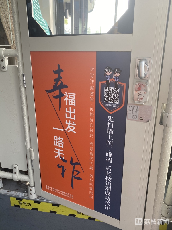 “25路公交车从南通火车站出发,一路向南穿过主城区,到达通师高专。”始发站辖区幸福派出所所长李荟说,当前电信网络诈骗案件高发易发,大中专院校学生更是易被骗人群,25路公交车终点站附近有工贸技师学院、卫生高职学校和通师高专、天星湖中学等学校,且途经市区多个繁华商圈,乘客量大,宣传受众面广。