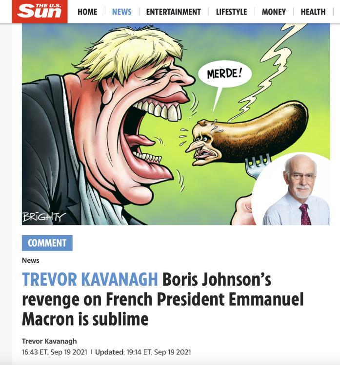 英国《每日快报》对此幸灾乐祸地表示,安格鲁撒克逊小圈圈让马克龙的震怒看起来如同笑柄。而《太阳报》更是宣称:约翰逊可算报了今年在G7峰会上的“香肠之仇”。