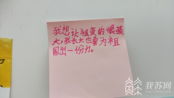 活动现场,同学们将自己的所思所想一笔一画写在了便签上,一句句充满童真却又满含深情的寄语,表达了少先队员对祖国的热爱,对革命先辈的崇敬,对中国共产党的感激。
