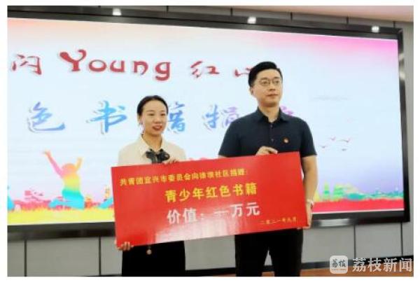 启动仪式上,宜兴团市委向徐坝社区捐赠价值一万元的青少年红色书籍,期待更多的青年们走进党史、感悟红色革命精神。