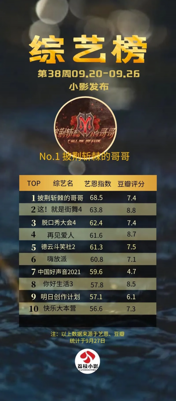 不用说,这周还是《哥哥》的天下,中秋节,大湾区组的几位哥哥集体亮相大湾区中秋电影音乐晚会,再度印证了哥哥近期的强势热度,在本周榜单中的一众类型综艺中,我们重点聊聊其中唯一的慢综艺《你好生活3》。