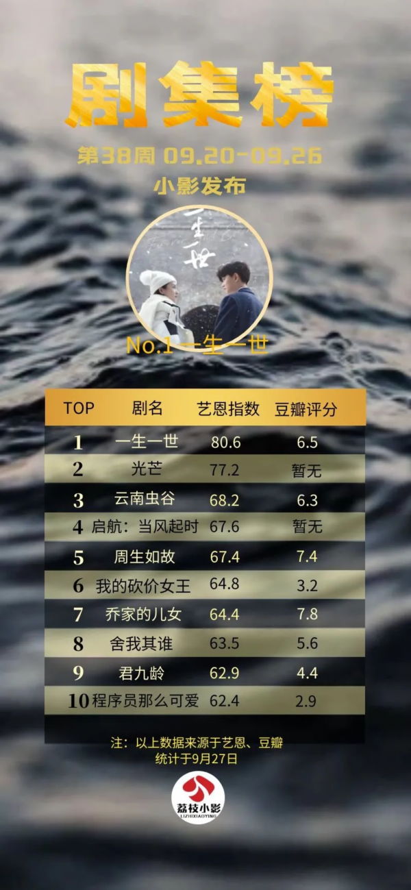 本周,都市剧霸榜,《一生一世》持续领跑,与《周生如故》的IP联动,于同期在播剧中还是有着独一无二的不可替代性。年代剧《光芒》也展露出不俗的成绩。