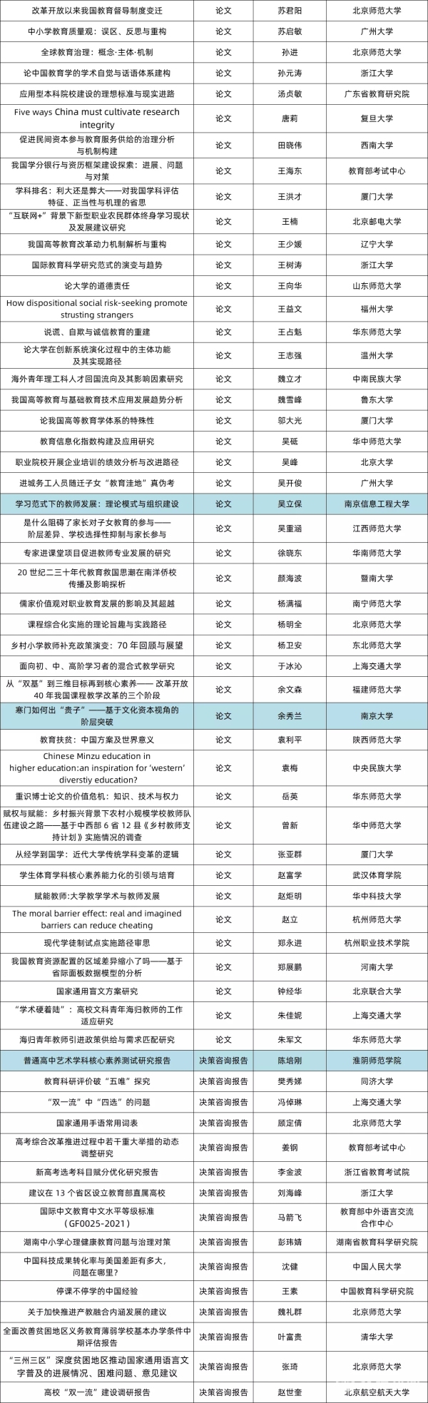 第六届全国教育科学研究优秀成果奖二等奖(119 项)