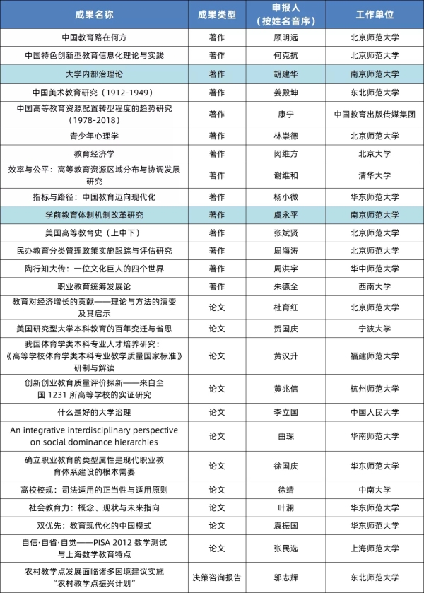 第六届全国教育科学研究优秀成果奖一等奖(26项)