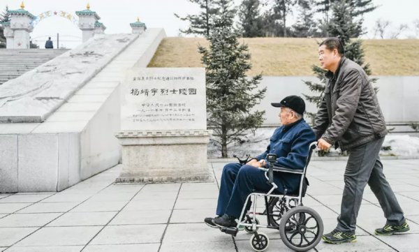 徐振明是吉林省通化市革命烈士陵园管理所首任所长,现年96岁。他先后参加过抗日战争、解放战争,1950年参加抗美援朝战争,曾荣立多次战功。他退伍转业到杨靖宇烈士陵园工作,父子两代默默守护英雄陵墓60余年,身体力行保护革命遗迹,讲述英雄故事,弘扬革命精神。图为徐振明(左)和儿子徐永军来到杨靖宇烈士陵园。新华社记者 王昊飞/摄