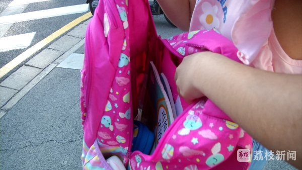 早上8点,在南京市琅琊路小学门前记者看到,孩子们的书包明显瘦身了。一位学生展示了他书包里的"装备",水杯、文具盒是"大件",书只有五六本教材,以前的各种作业本、练习册都没了。