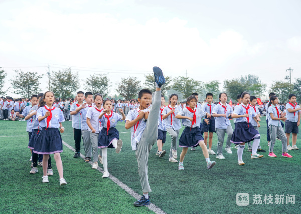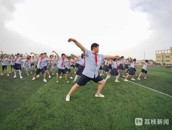 据了解,自开学以来,该校全面落实“双减”和课后服务工作要求,推进传统文化进校园,编排武术操《千字文》在全校推广。