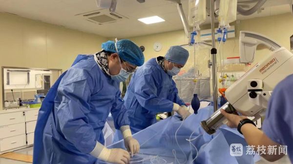 情况十分危急,需要立即为王先生打通堵塞动脉。接到医院电话后,逸夫医院卒中中心文立利主任和陈灿和张雅旋医生、导管室王晓静护士立即从家中赶至医院。在王先生到达手术室不到10分钟时间,一根掌控着他命运的导管,就从患者股动脉,输送到了脑血管中。