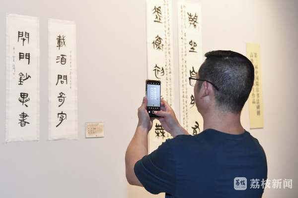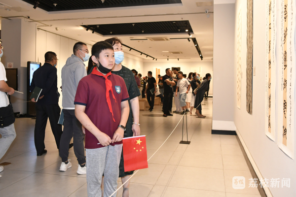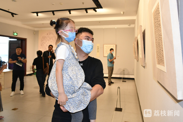 本次展览展出的110余幅作品,有全国简帛书法名家创作的佳品,也有市简帛书法研究会会员的倾心之作,取法多样,承古开今,充分吸取和借鉴了古海州地区简帛书法的精华,以诗咏海州为主题,充分展现了简帛书法的艺术风貌。记者在现场看到,本次展览不仅吸引的广大书法爱好者,还有一些市民带着孩子前来观展,市民李先生告诉记者:“这个国庆假期就想带着孩子,在本地转一转,今天特地带孩子来美术馆、博物馆走一走、看一看,让孩子了解一下连云港的文化、历史,开拓一下孩子的眼界。”