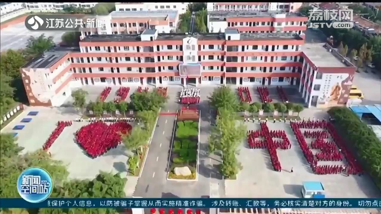 在宿迁泗阳新袁镇小学,2000多名党员和少先队员身着统一整齐的服装,有序地排列成“我爱中国”和“1949-2021”的字样。伴随着国歌声的响起,五星红旗缓缓上升,每个人的内心都升腾起一份无限的骄傲和自豪。