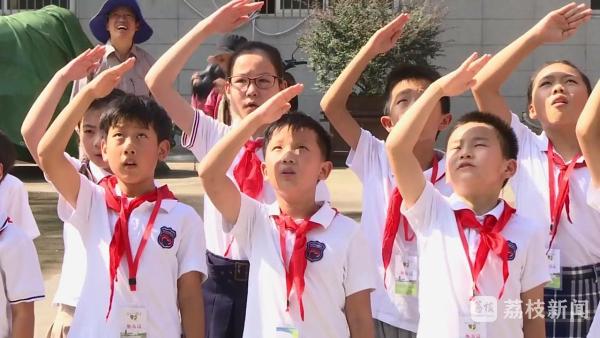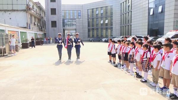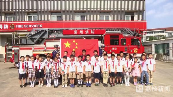 国庆节当天,常州市第二实验小学部分学生走进常州市公安消防支队天宁大队竹林路中队,观摩升旗仪式,共庆祖国生日,“祝祖国母亲繁荣富强,蒸蒸日上。”