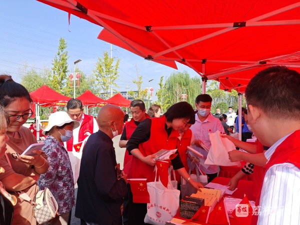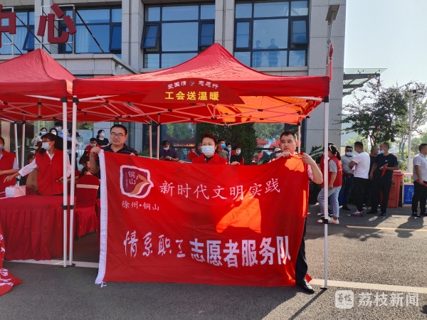 为庆祝中华人民共和国成立72周年,进一步深化党史学习教育成果,9月30日上午,徐州市铜山区总工会情系职工志愿者来到新区街道驿城村新时代文明实践文化广场,向广大职工提供劳动法律法规知识宣传和现场解答服务,并为前来咨询的职工发放工会暖心关爱礼包。