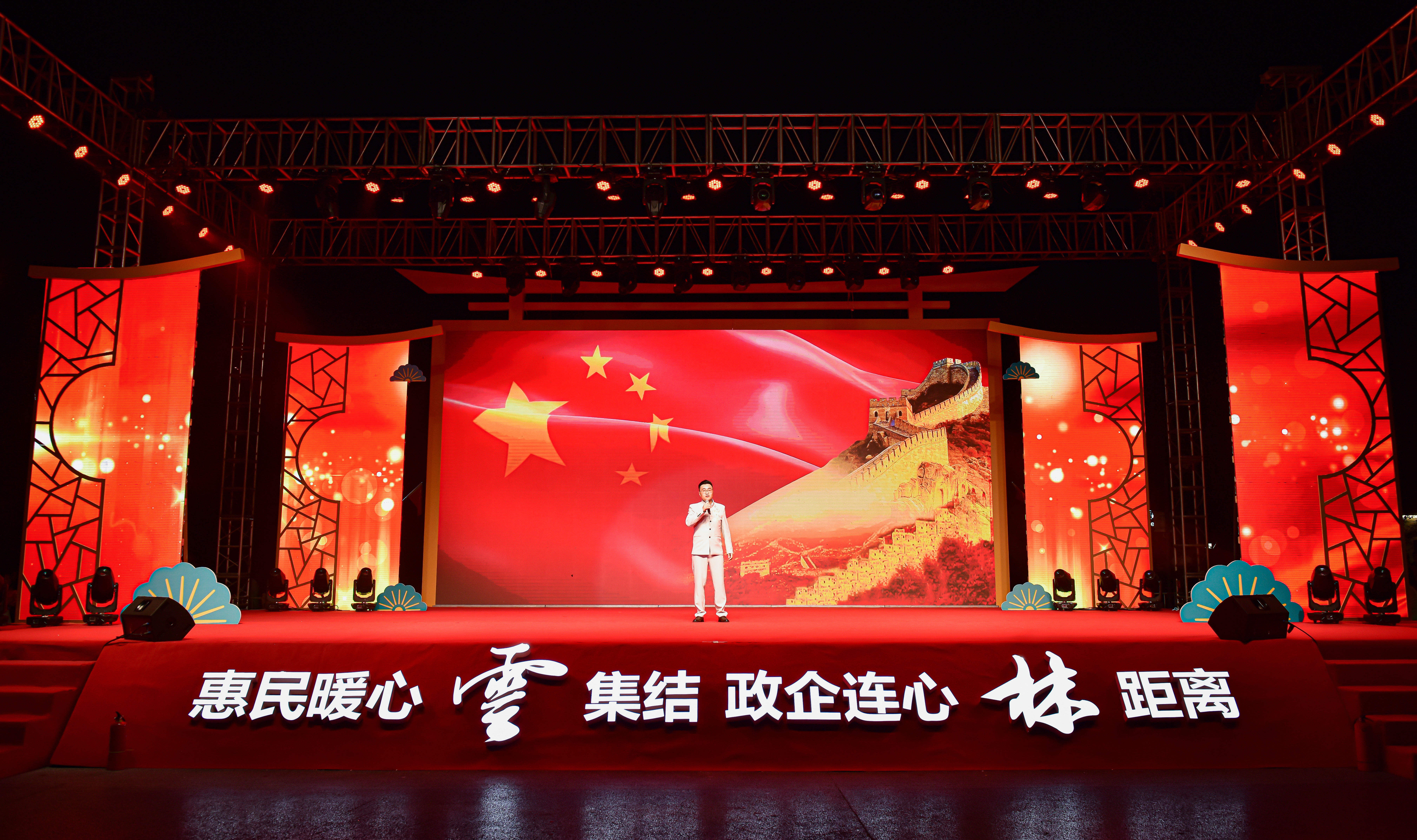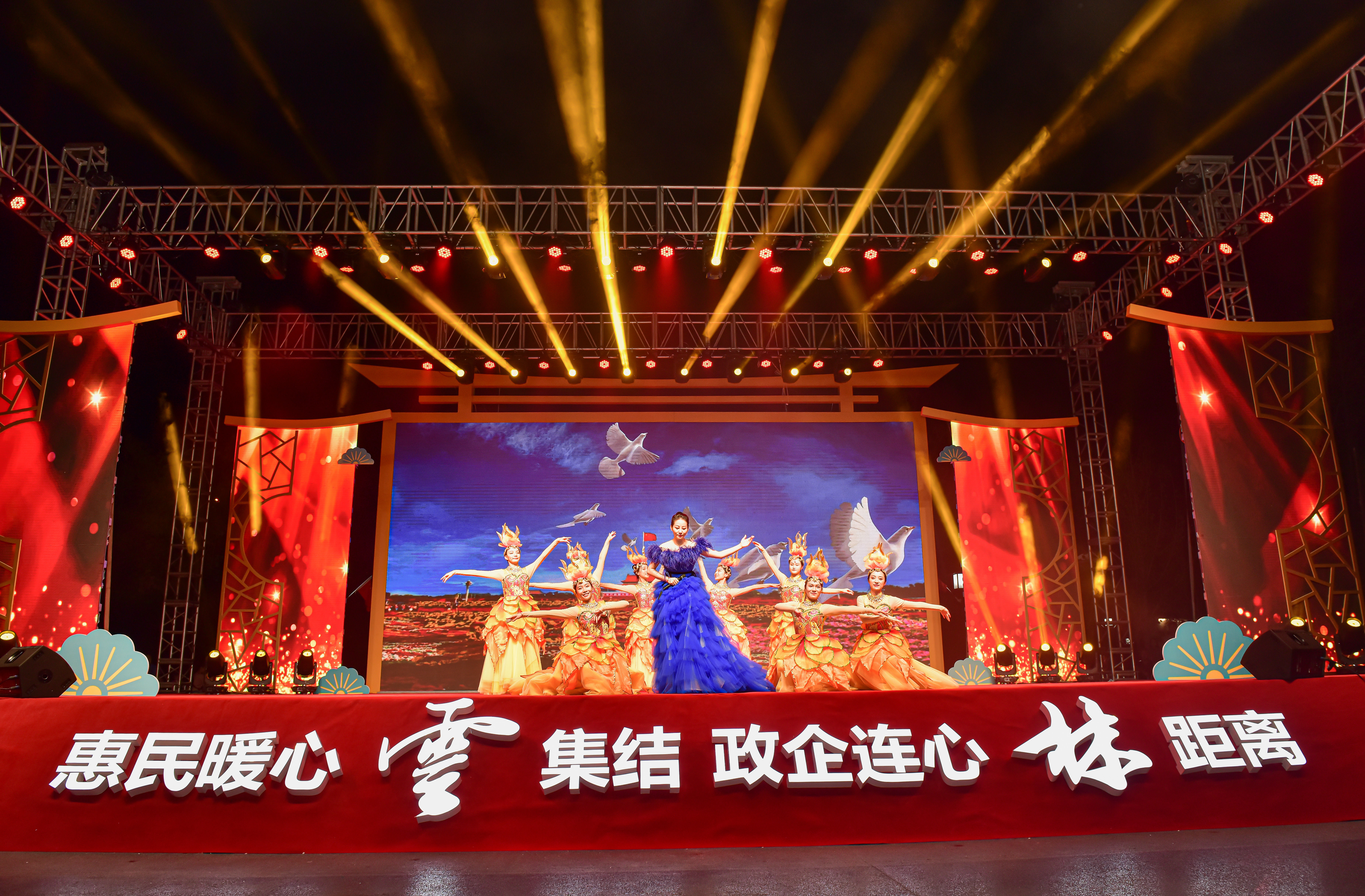 为庆祝中华人民共和国成立72周年,团结激发广大人民群众对于家乡的热爱之情,进一步加强与辖区企业间的联动沟通,推动党史学习教育成果转化为发展“助推器”,营造群众同携手、政企一家亲、共圆中国梦的喜迎国庆氛围,9月30日晚,无锡市锡山区云林街道在云林文化广场举办“惠民暖心‘云’集结 政企连心‘林’距离——云林街道喜迎国庆主题文艺汇演”活动。