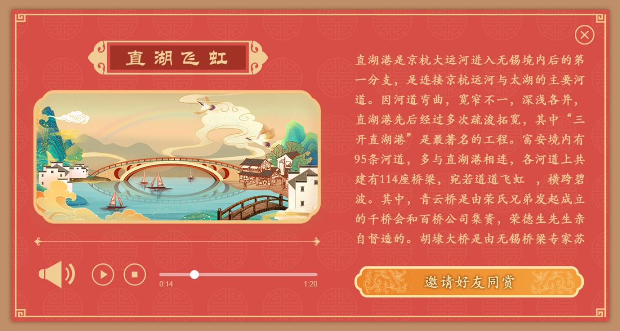 10月1日,“穿越千年,梦回富安”互动H5发布了!富安乡历史悠久,曾经管辖过陆区、阳山、闾江、华藏、胡埭等38个乡镇,自古便是地灵人杰之地,无锡历史上第一位状元蒋重珍就出生在胡埭蔡村,状元古道上更是走出了四位金榜题名的读书人,历来为文人骚客青睐,奇人轶事车载斗量。为了让更多人轻松了解富安,滨湖区胡埭镇通过生动有趣的H5画卷,撷取富安六大必打卡之地,带领大家足不出户,滚动手机屏幕,即可“穿越千年,梦回富安”,品读富安人文之美。