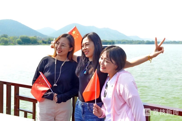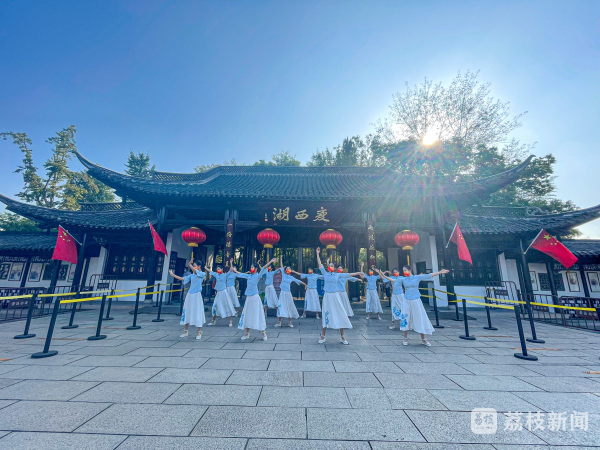 路过的人们纷纷停下脚步,自发的参与其中,摇旗共舞,合影留念,来记录这珍贵的时刻。瘦西湖导游服务党支部书记周萍介绍,本次快闪活动以“盛世华诞,喜迎国庆”为主题,全程由导游姑娘们自编自导自演并精心制成视频,希望这群年轻活力的文旅传递者,在党支部的引领下,更好的为市民游客服务,讲好地方故事,亮新生代风采。