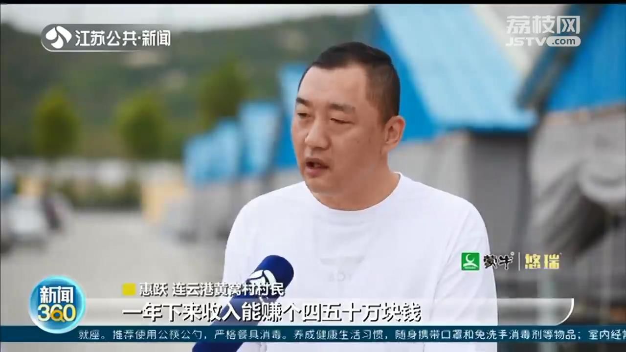 连云港黄窝村村民惠跃说:“现在养了1000亩,一年下来收入也能赚个四五十万块钱。”