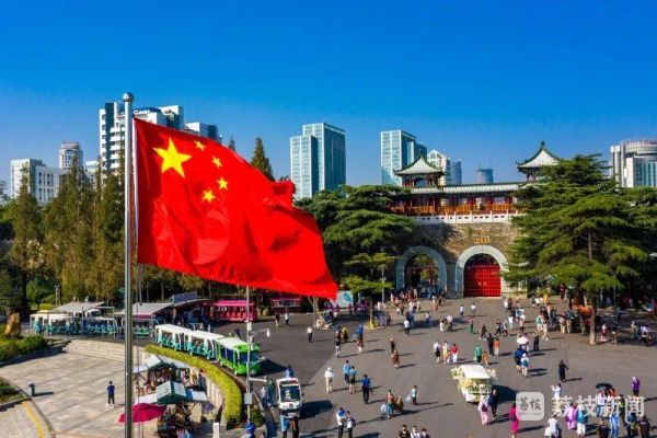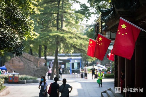 景区内,大红灯笼挂起,五星红旗飘扬,一派节日的气氛。当下,玄武湖景区秋花秋实展已经开幕,向日葵、百日草、美人蕉等各式秋花争艳,榉树、栾树等色叶树种初见斑斓,美不胜收。游客们或赏花漫步,或乘坐游船泛舟湖面,感受假日美好。