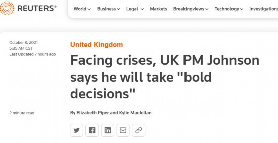 【环球网报道】路透社消息,英国首相约翰逊将于当地时间3日作出“重大而大胆的决定”以改变后新冠时代的英国,希望能为保守党会议定下基调。