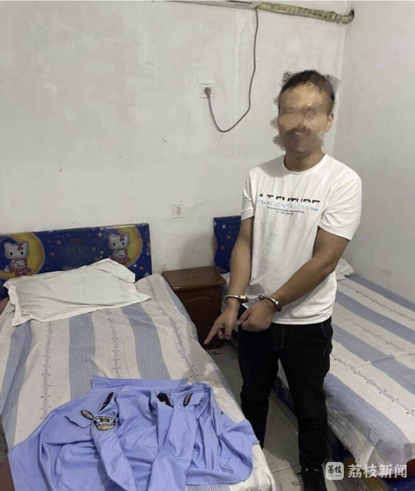 10月2日凌晨1时许,分局合成作战中心反馈:该男子最后出现在镇江王家巷。七里甸派出所联合润州分局刑警大队立即赶赴王家巷。凌晨2时许,民警在某小旅社内找寻到睡着的嫌疑人倪某,并在床下搜寻到该男子的“警服”。