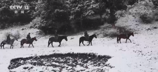 中哈381号界碑位于中哈边境沙尔套山深处,沿途山高路险林密,自然条件极其恶劣。“进山先过弯,群峰在身边,拐过十河滩,还有通天山”这是流传在连队的顺口溜,也是战士们在巡逻路上的真实写照。越下越大的雪严重考验着官兵的体力和军马的耐力。为确保安全,巡逻途中指挥员不停地调整口令。