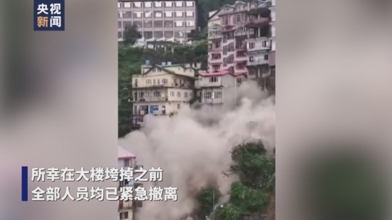 近日,印度北部喜马偕尔邦发生惊险一幕:因泥石流灾害,当地一栋8层大楼坍塌。现场画面显示,大楼起初只是倾斜,后突然大幅向下垮塌,现场瞬间扬起大片尘土。伴随巨响,短短数秒内高楼变成废墟。所幸在大楼垮塌之前,全部人员已紧急撤离。