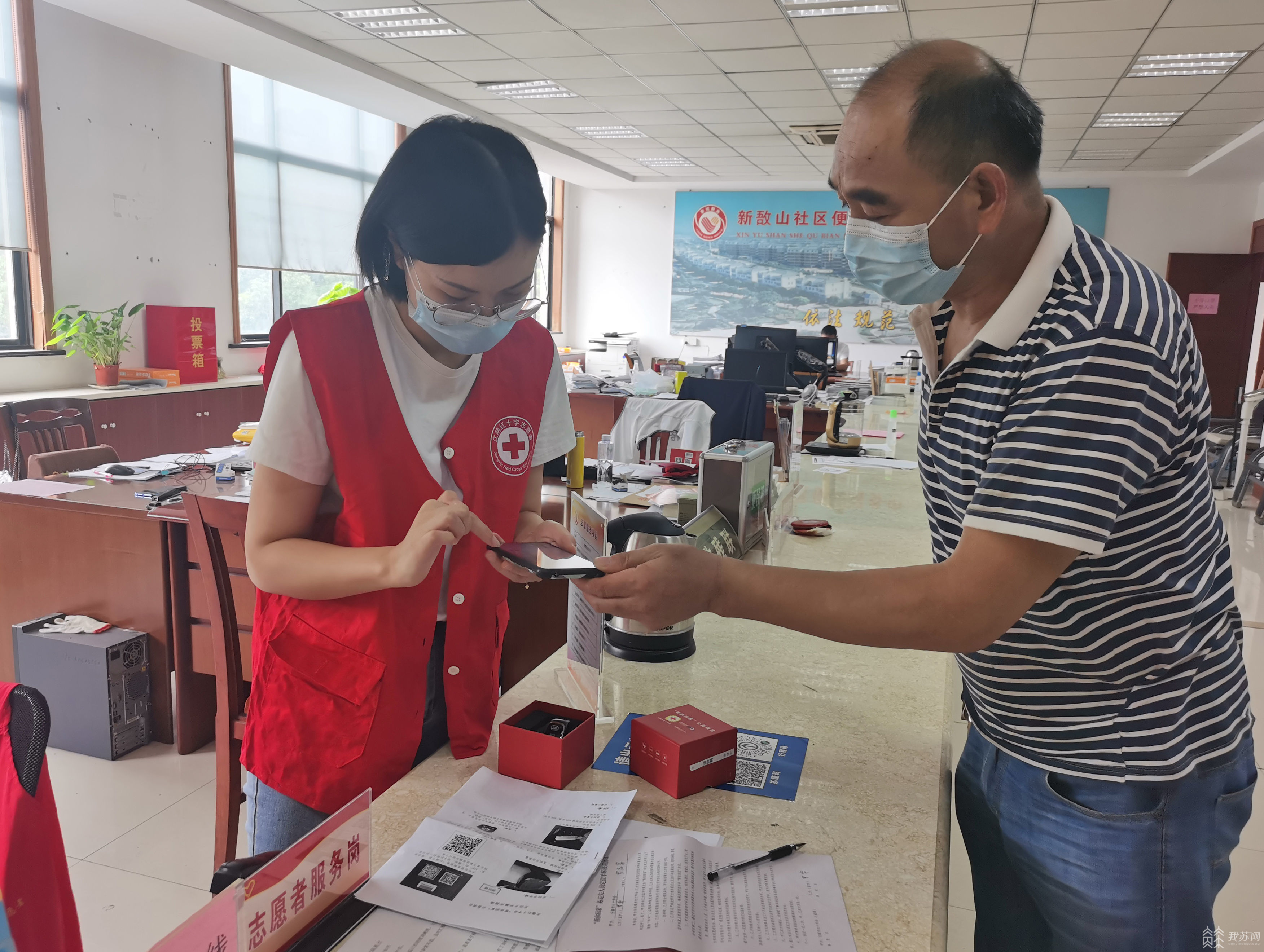 “红十字帮你回家”公益项目免费为困难家庭的易走失人员配发定位手环,通过与其家属手机联机,进行远程监护,为预防易走失人员提供了一道安全屏障,监护人可通过手机APP随时查看手环佩戴人实时地理位置,变被动寻找为主动看护。(来源:江苏广电无锡中心站/徐恺言)
