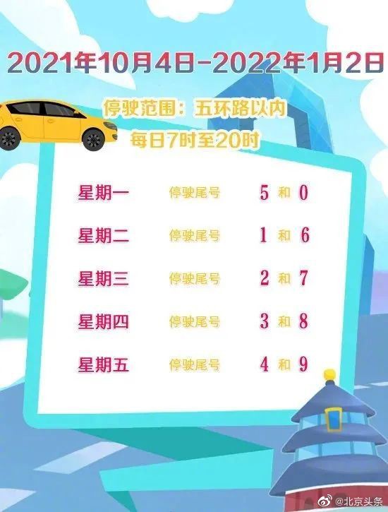 注意了!10月8日北京机动车尾号限行将进行轮换,8日为周五,是节后第一个工作日,限行尾号为4和9,开车上班的市民朋友不要忘了。据北京交管局提醒,北京国庆假期不限行,节后限行尾号轮换。自2021年10月4日至2022年1月2日,星期一至星期五限行机动车车牌尾号分别为:5和0、1和6、2和7、3和8、4和9。