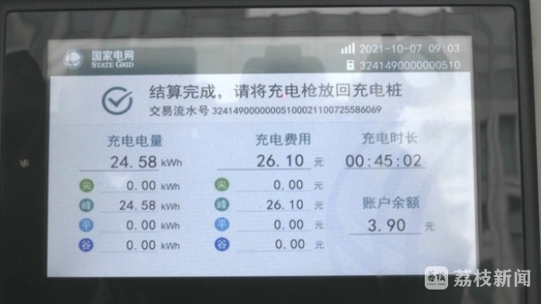 国庆期间,王先生驾驶电动汽车来到扬州城区的华城科技广场充电桩,他惊喜地发现,整个充电比以往便宜。