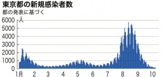 东京都最近半年间的新增确诊病例数变化趋势图。(图片来源:《朝日新闻》)