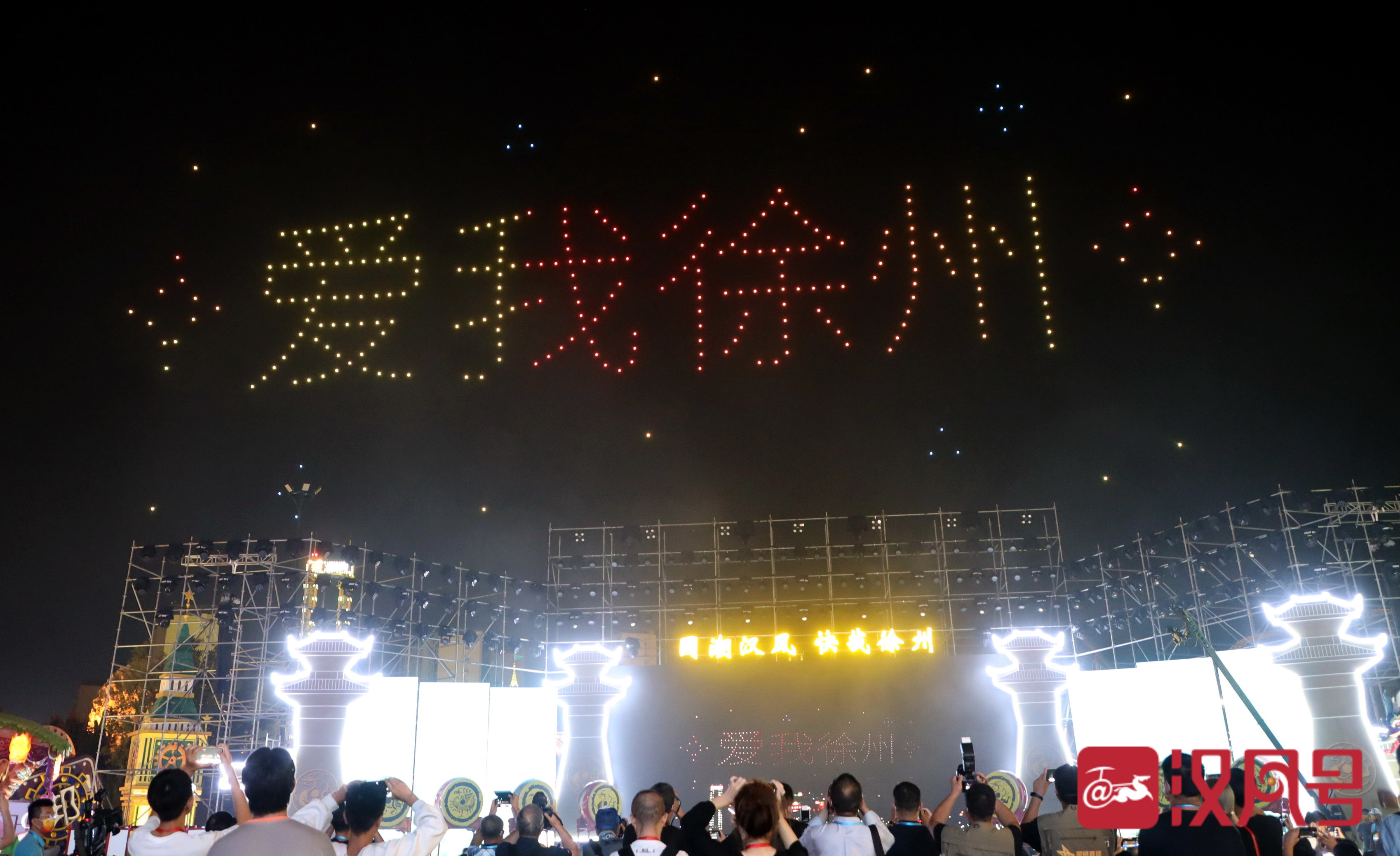 我爱你中国、爱我徐州、汉舞俑、车马出行图、快哉徐州……2021中国(徐州)汉文化旅游的启动仪式上,300架无人机通过模拟动态仿生设计编程,以一场3D光影大秀扮靓了夜空,诠释了本届汉文化节的主旨,一场新中国生日与汉文化节日的时空碰撞。