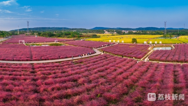 国庆赏花热门地中,粉黛乱子草盛开的郭兴庄园累计接待10.3万人次。粉黛季加持网红小火车,还有文创市集、露营烧烤,更有80组家庭背靠粉色花海“安营扎寨”。