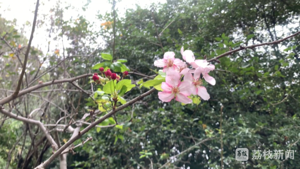 这个季节,很多树木开始变色凋零,不过近日,有市民在南京鸡鸣寺附近看到,本该是春天开的樱花,却在寒露时节绽放粉红的花朵,颇有"穿越"之感。
