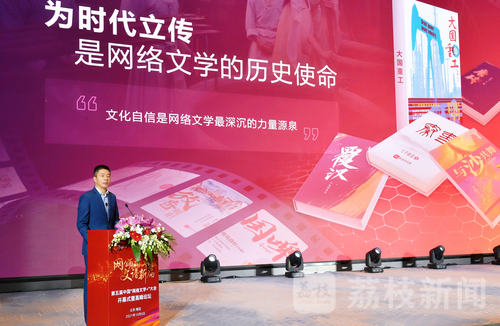 荔枝新闻讯 10月9日,以“网颂百年 文谱新篇”为主题的第五届中国“网络文学+”大会正式开幕。阅文集团首席执行官、腾讯集团副总裁兼腾讯影业首席执行官程武受邀出席开幕式暨高峰论坛,并以《发时代先声,让中国好故事生生不息》为题发表演讲。