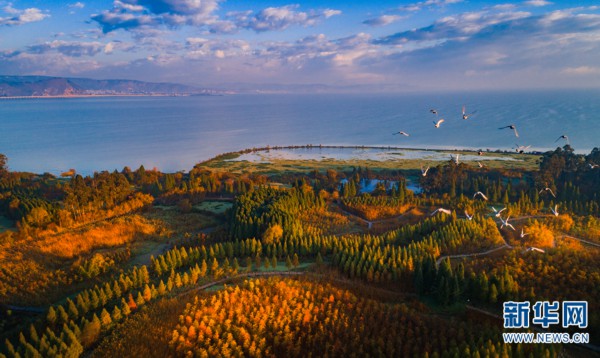 航拍晋宁南滇池国家湿地公园(资料图)。新华网发(晋宁区委宣传部 供图)